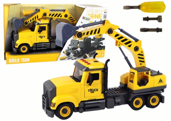 Napęd frykcyjny zapewnia proste i dynamiczne poruszanie się ciężarówki. Dodatkowo, w zestawie znajdziesz śrubokręt z 2 wymiennymi końcówkami, co pozwoli na interaktywną zabawę i eksperymentowanie.