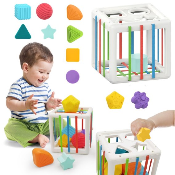 Zawartość zestawu: Zabawka zawiera 6 elementów o różnych kształtach, które można wrzucać do wnętrza kostki i wyjmować, co zapewnia godziny kreatywnej zabawy.