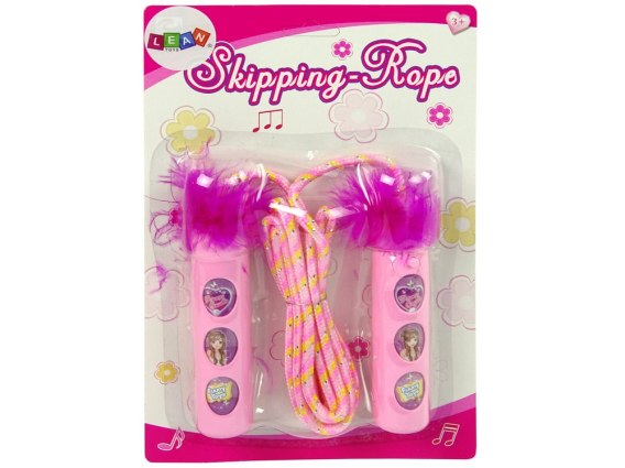 Ten różowy model skakanki wyposażony jest w plastikowe rączki z wygodnym uchwytem, leżącym idealnie w dziecięcej dłoni. Na uchwycie znajdują się okręgi z podobizną dziewczynki księżniczki, oraz dwie inne kolorowe naklejki. Po włączeniu okrągłego przycisku na rączce ze skakanki, z małego głośnika będą wydobywać się wesołe melodie, które umilą zabawę, które zachęcą do zabawy.
