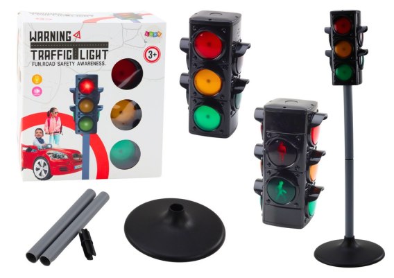 Sygnalizator świetlny do zabawy edukacyjnej z realistycznymi efektami dźwiękowymi i świetlnymi uczy dzieci zasad ruchu drogowego. Pomaga w tworzeniu scenariuszy zabaw, rozwija wyobraźnię i bezpieczne nawyki, idealny do domu, szkoły i na plac zabaw.