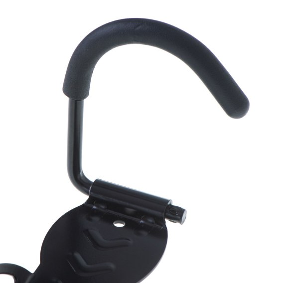 Wieszak umożliwia powieszenie roweru na ścianie za obręcz